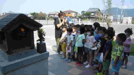 行事日記 はじめての地蔵盆 2020年8月21日(金) 和尚さんからのおはなし お経の間は手を合わせお焼香も経験し、最後に和尚さんからのお話を聞ました。子どもたちは毎日登園時と降園時にお地蔵さんの前で手を合わせてお礼をすることを和尚さんと約束をしました。毎日続けてほしいです。 もどる