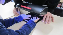 行事日記 手洗い講習会 2019年10月27日(日) 綺麗に手洗いできたかな(ほし組) 八日市食品衛生協会から正しい手洗いの仕方を教えてもらいました。これから風邪等が流行る季節になるので、教えてもらった手洗い方法で予防していきたいです。 クリームを塗った手を洗った後に、特殊な機械に手をかざしてみると…洗い残した汚れが白く見えるという仕組み。なんと一回の手洗いで綺麗になった子もいました! もどる